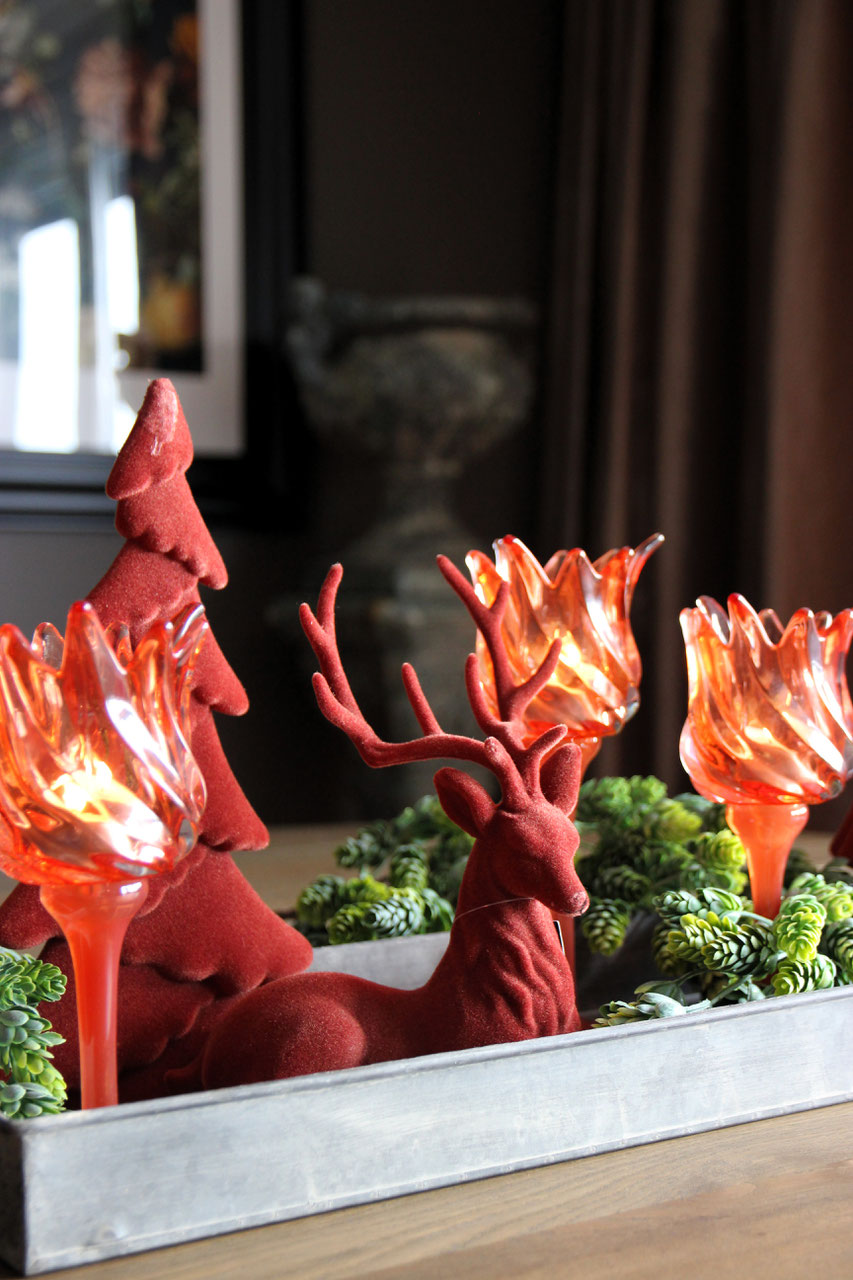 Een gewei met plek voor 2 grote waxinelichten of een windlichtje. Zacht goud. 28 x 17 cm