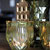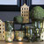 Zwart metaal windlicht met 3 losse flesjes die je kan vullen met olie.